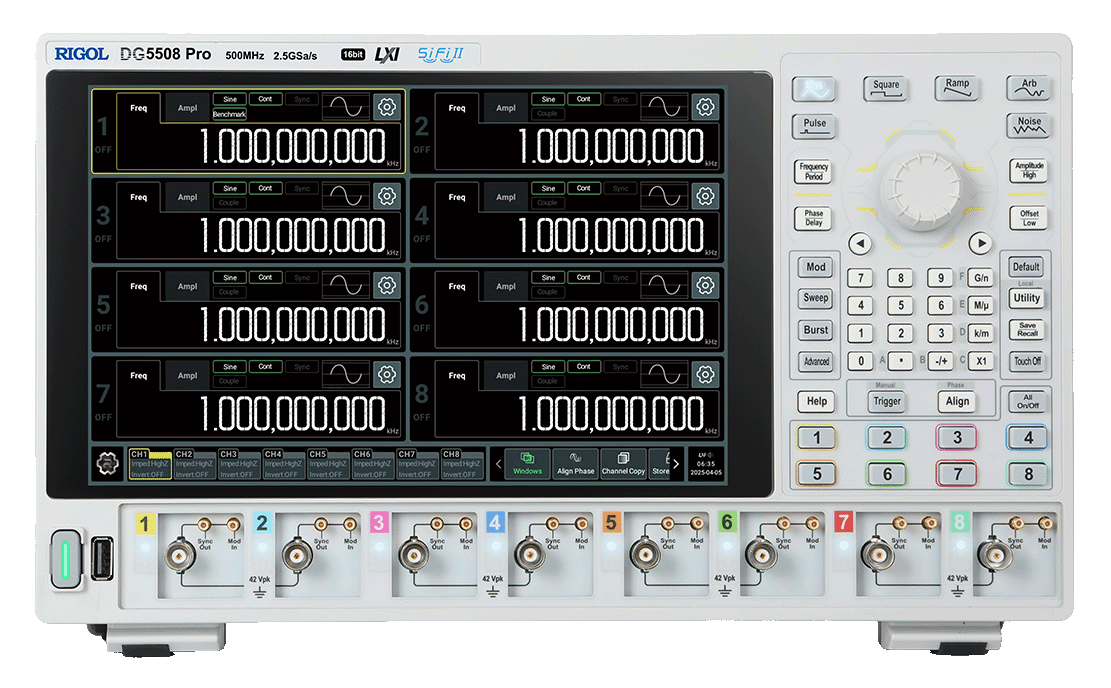 Today, RIGOL has added six new models—four-channel and eight-channel variants—upgrading DG5000 Pro into a next-generation multi-channel waveform generation platform. The upgraded DG5000 Pro Series delivers picosecond-level precise synchronization and clean, galvanically isolated outputs to address complex, high-precision multi-channel test challenges.
