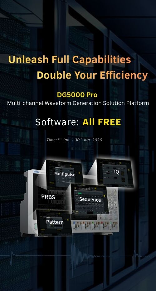 DG5000 Pro Series Multi-channel Waveform Generation Solution Platform Anniversary Special Promotion is Grandly Launched! Celebrate the anniversary and enjoy unparalleled discounts! All optional functions of all models in the full series are Unlocked for Free* for a limited time, helping you meet diverse application needs in semiconductors, photovoltaic inverters, new energy vehicle DC/DC converters, cutting-edge scientific research, education, and hobbies.