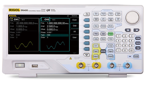 DG4000 series multi-function signal generator with functions of function generator, arbitrary waveform generator, pulse generator, harmonic generator, analog / digital modulator, frequency meter, etc. all models of this series have two channels with identical functions and phase adjustable between channels.