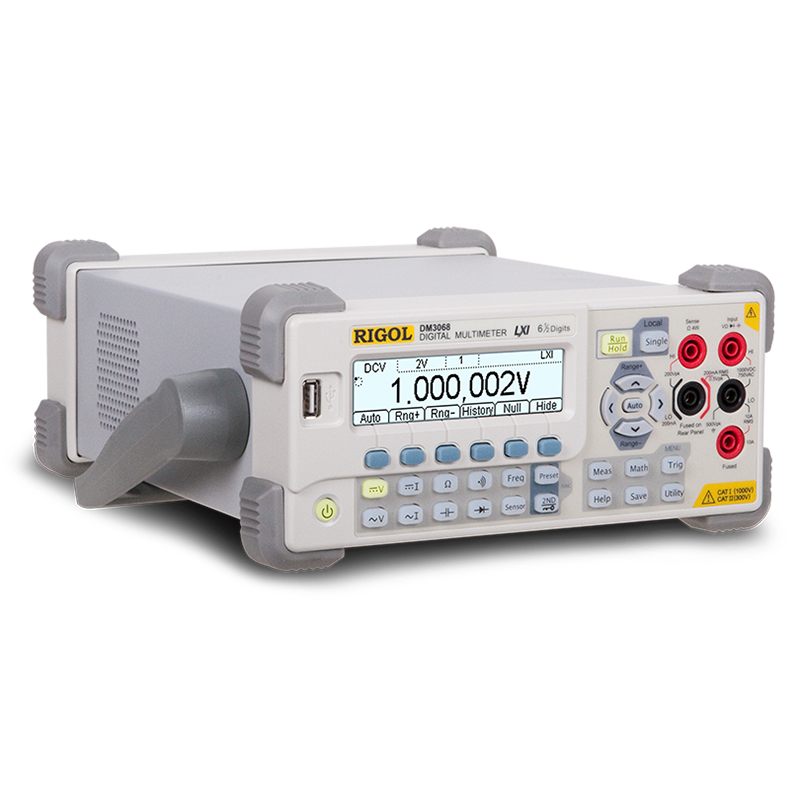 DM3068 series digital multimeter has the highest accuracy of 6.5 bits. It is designed for the test requirements of high accuracy, multi-function and automatic measurement, and integrates the functions of automatic measurement, multiple mathematical transformations and arbitrary sensor measurement. Compatible with the mainstream multimeter command set, it can meet the needs of research and development, quality verification, automatic production, education and training and other fields.