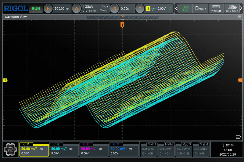 The DHO1000 Series Digital Oscilloscopes are equipped with a second generation chipset developed by RIGOL. With a low noise floor and 12 bits, these high-resolution oscilloscopes are capable of finding the tiniest signals.
