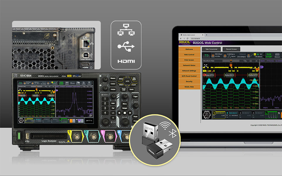 The MHO900, equipped with standard Bluetooth and Wi-Fi adapters, allows engineers full remote network access and control, enabling unattended automated testing or long-distance data monitoring—greatly improving efficiency and safety. Bluetooth connectivity expands the possibilities for peripheral devices without occupying any physical ports, eliminating cumbersome cables. This “out-of-the-box” wireless solution is designed to create a cleaner, modern testing environment, allowing you to focus more on data analysis and technological innovation.
