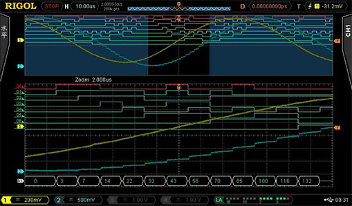 The MSO model provides 16 digital logic channels, making it more convenient to test multiple analog and digital signals simultaneously and more efficient to perform digital logic and mixed-signal analysis.
