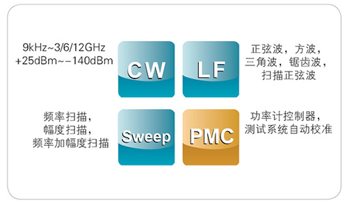 The maximum output signal frequency of the DSG3000 can reach 12 GHz. It can generate continuous waves, various forms of low-frequency signals, and frequency/amplitude sweep signals with multiple configurable parameters. The output signals are accurate and reliable, and it provides the function of automatic calibration through a power meter.